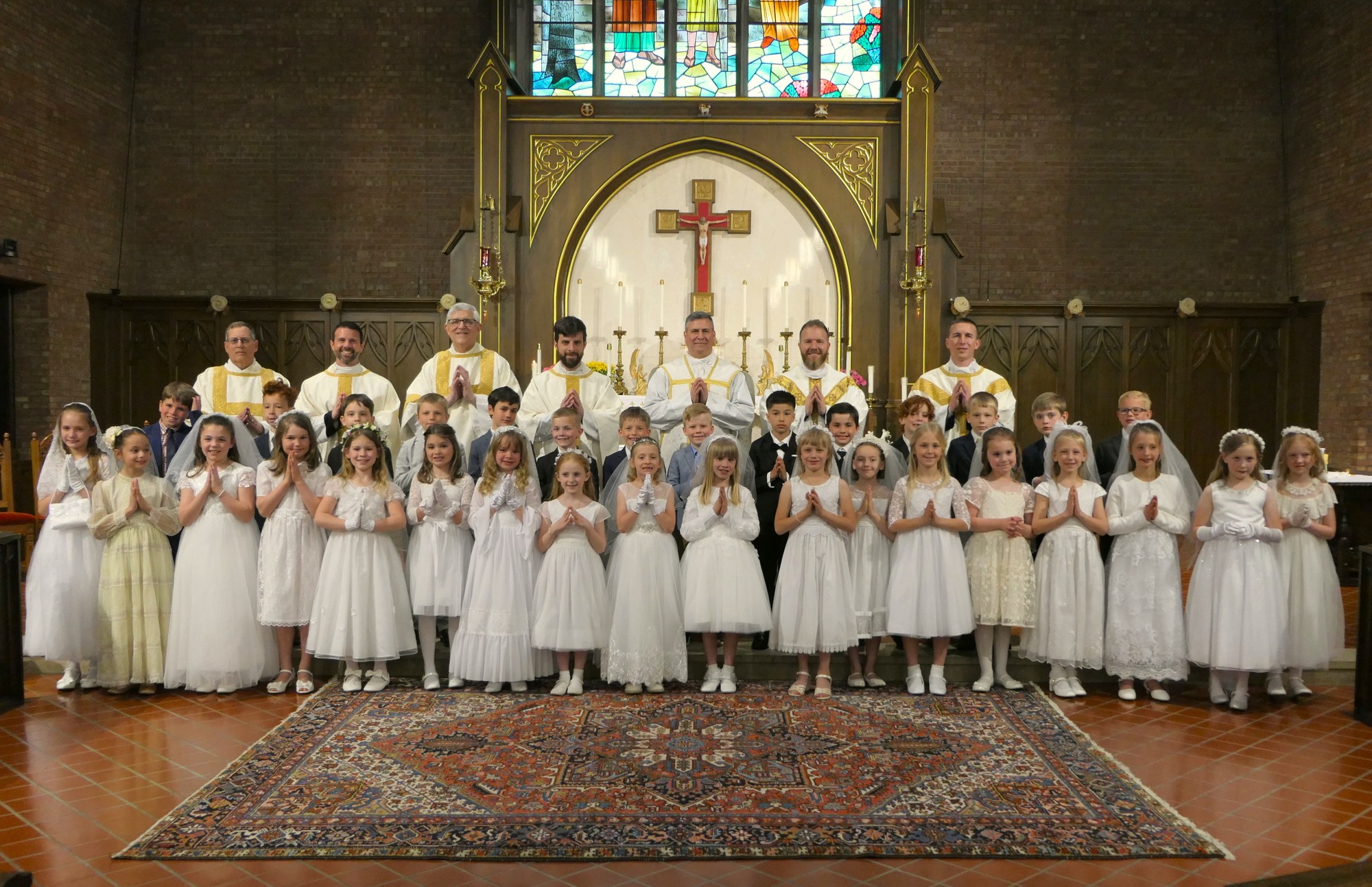 On the day of First Holy Communion, it is quite a beautiful sight to see all of the First Communicants dressed in suits or white dresses and veils kneeling at the Communion rail waiting for this most important moment in their life, when they will meet Jesus in the Holy Eucharist. On the Monday following First Communion, the students wear their First Communion clothes to the daily school Mass. After Mass, there is a reception with the entire student body followed by a special reception with the parents of the First Communicants.